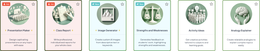 Enhance your classroom impact with our AI tools. Streamline lesson planning and dedicate more time to teaching while we take care of the rest.